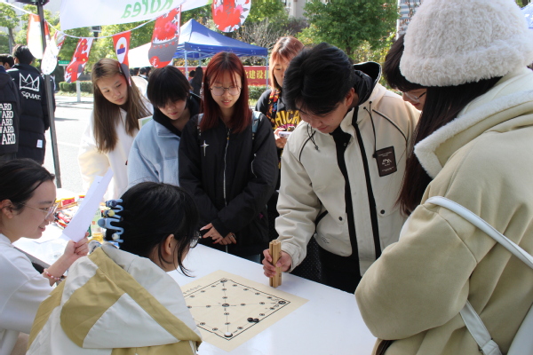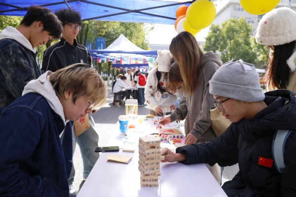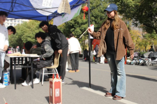 新闻中心讯(记者 齐佳玥 见习记者 罗陈佩 王可睿)投壶区箭矢破空,棒球场欢呼阵阵,马来语课堂互动热烈,非洲舞蹈活力四射……11月27日午后,武汉工商学院博问路化身“微型地球村”,第四届国际文化节系列活动之“环球帐篷嘉年华”热闹启幕。中国、美国、英国、新加坡等十余个国家和地区的主题帐篷依次排开,中外师生携手沉浸式体验多元文化,校园里飘着墨香、裹着异域风情,处处跃动着文化交流的活力。