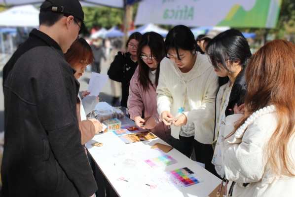 除了静态展示,英式拼字、法式单词接龙、澳洲地标配对等益智游戏,书法与纸伞创作、薰衣草香包缝制、马赛珠饰DIY等手作体验,更让文化交流从“看”升级为“做”。大家手持“打卡护照”穿梭各帐篷,集齐印章后参与抽奖兑换特色纪念品,将文化记忆带回家。