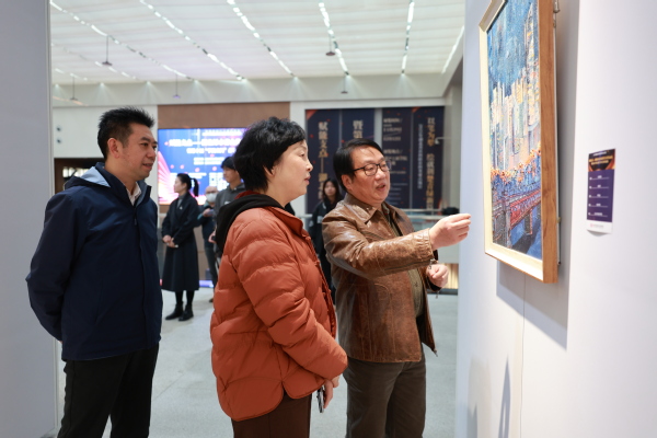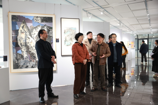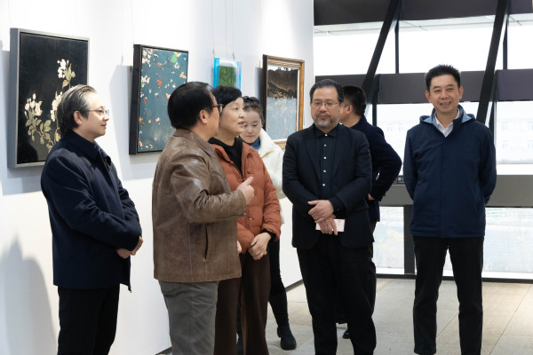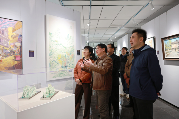 新闻中心讯(记者 李洋洋 许依平)12月9日下午,湖北省人大常委会委员、省农业农村委员会副主任邓长青一行来到武汉工商学院青菱科学与艺术馆,参观指导“赋能支点——湖北绿水青山优秀美术作品展”暨第十届“学院空间”青年美术作品展。武汉工商学院党委书记詹河焰,湖北省美术家协会副主席、武汉工商学院艺术与设计学院院长许开强,作品展主办单位湖北省学院空间艺术研究院院长苏山等陪同参观,并就策展缘由、作品内涵及美育育人等工作进行了深入交流。