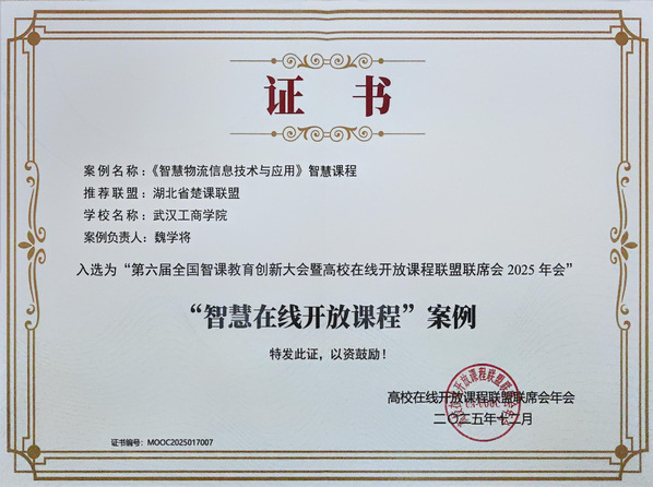 会上公布了“AI数智技术与智慧慕课助力教育数字化转型”优秀案例遴选结果,武汉工商学院物流学院魏学将老师负责的《智慧物流信息技术与应用》课程入选,获评“智慧在线开放课程”优秀案例。此次获奖,标志着武汉工商学院在智慧课程建设与教学数字化转型方面取得了阶段性成果,为同类课程改革提供了可复制、可推广的实践范式。